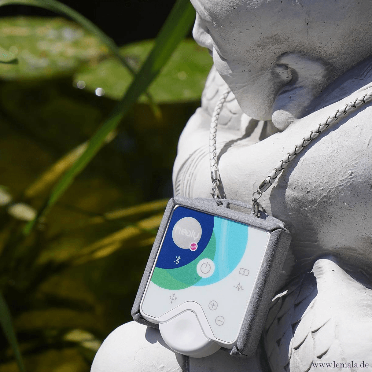 HEALY ist ein kleines, aber sehr vielseitiges tragbares Gerät, das von deinem Smartphone / Tablet gesteuert wird.